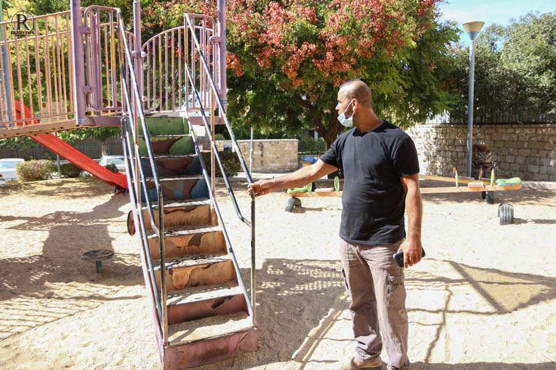 ראינו מתקנים שבורים שחלקם התקלפו והחלידו