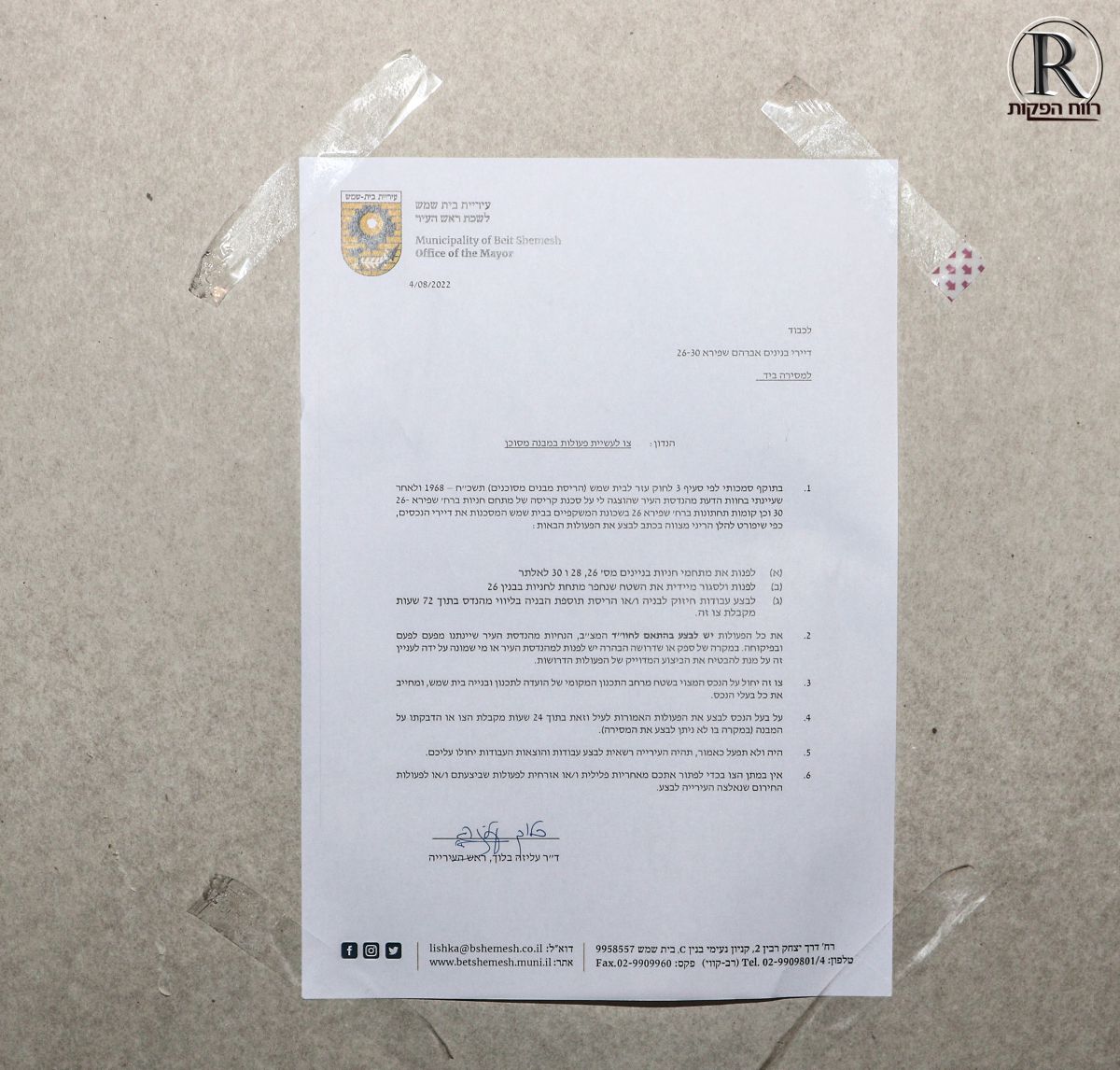 עיריית בית שמש קוראת לתושבי העיר, אם ידוע לכם על עבירות בנייה בעיר, נא ליידע במיידית את מוקד 106 ואנו נטפל בעברייני הבנייה בהקדם.
