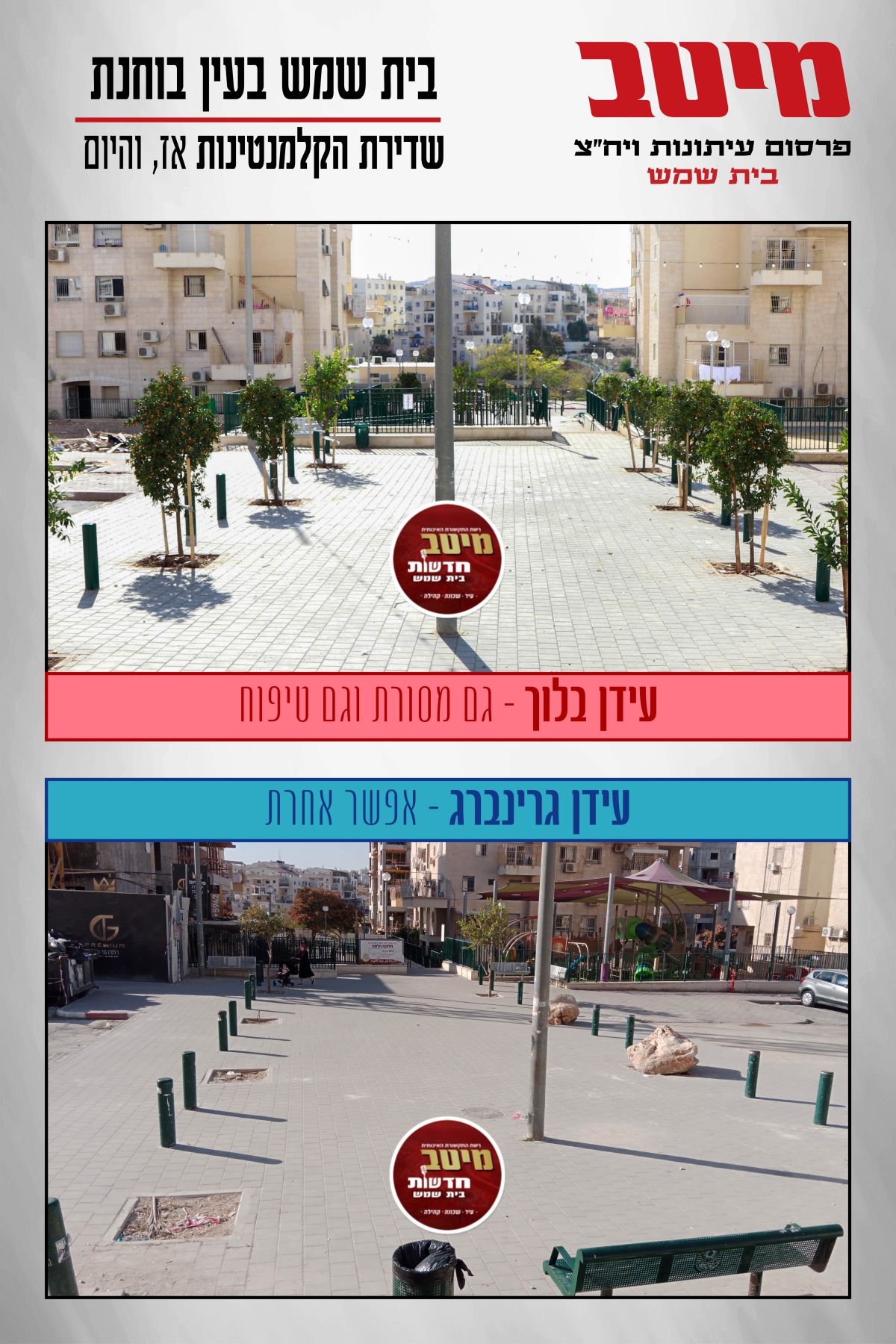 בכדי להמחיש את הפער לטובת קהל האלפים שהגיע לגור בבית שמש רק בשנים האחרונות, נציג את התמונות מהשדרה כיום ובעידן בלוך. מצאו את ההבדלים.