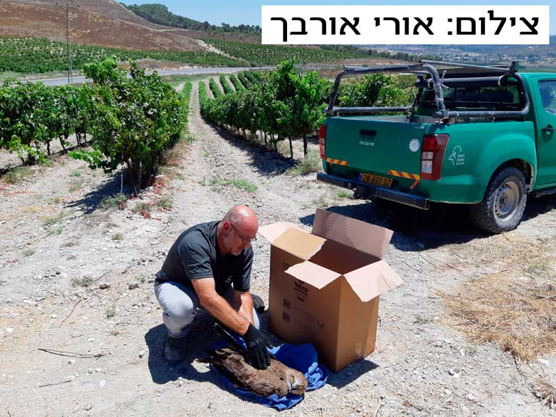 גמליאל גולדהירש גילה תוך כדי הליכה עוף הנמצא במצוקה ומיד קרא לפקח רשות הטבע והגנים אורי אורבך שחילצו בזהירות והעבירו לטיפול בבית החולים לחיות-בר שבספארי.