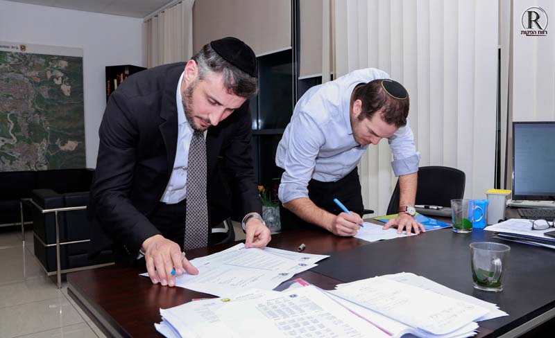 ראש העיר ד"ר עליזה בלוך עם חברי תנועת ש"ס בעת חתימת ההסכם הקואליציוני.