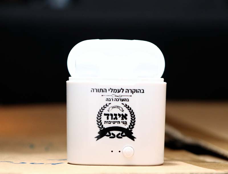 בחור שסיים מסכת אחת קיבל אוזניות אלחוטיות עם חותמת של איגוד בני הישיבות שנעשה ב'פלש מוצרי מיתוג', ובחור שסיים שתי מסכתות קיבל אוזניות אלחוטיות ומטען נייד.