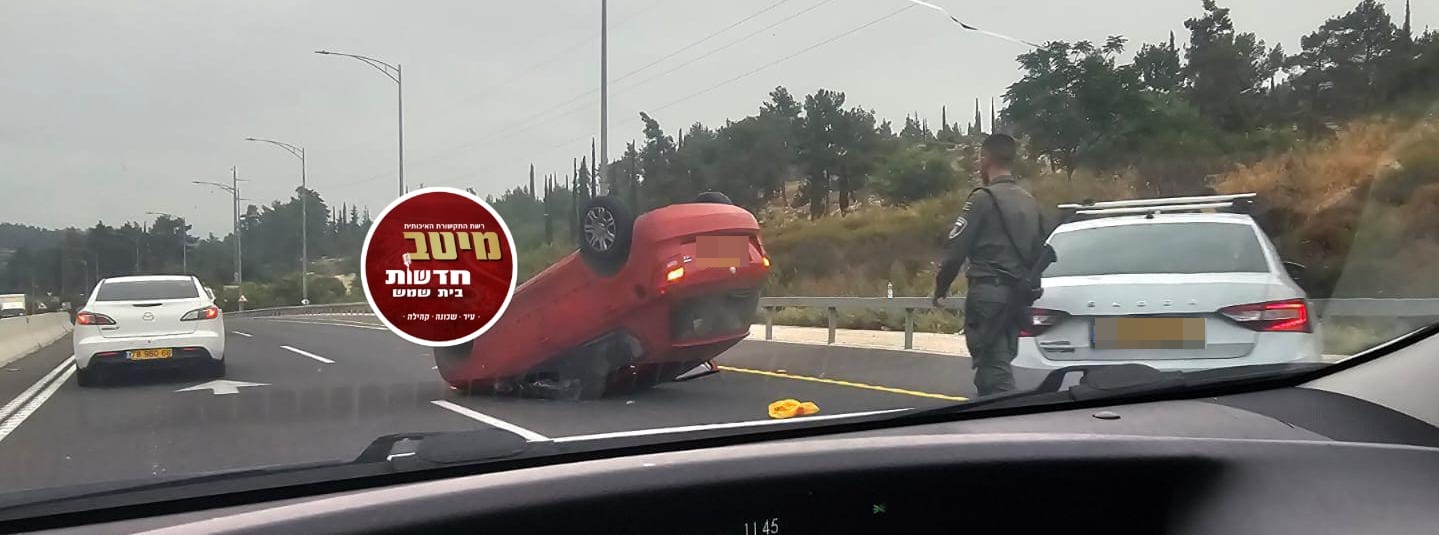 רכב התהפך בכביש 38: עומסי תנועה כבדים לכיוון ירושלים