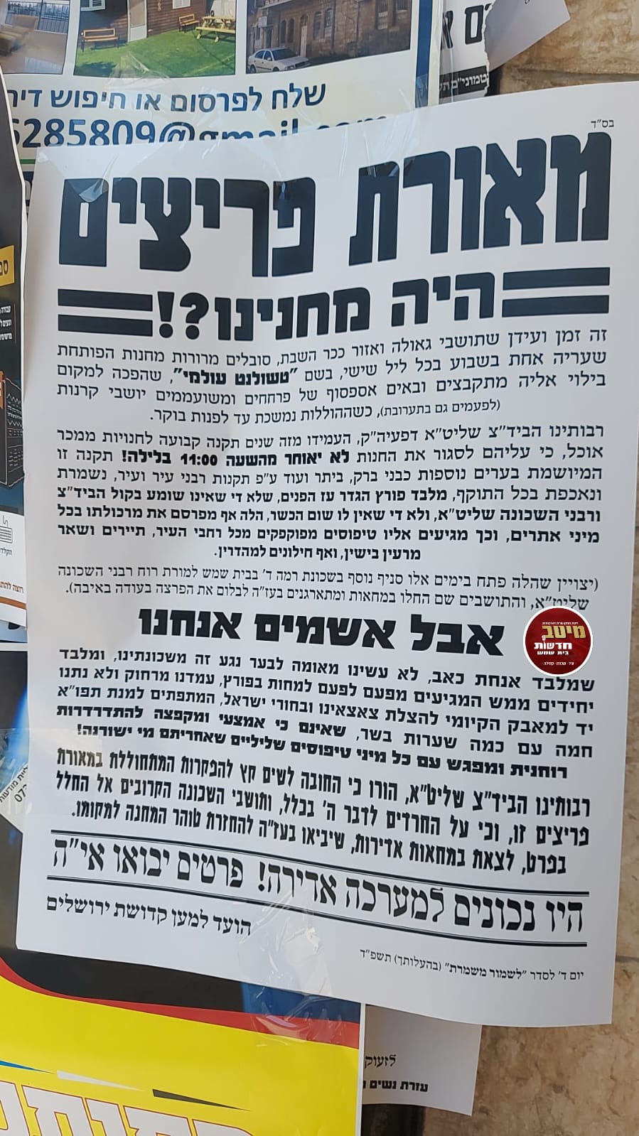♦ חברת הפרסום הגדולה בבית שמש 'מיטב הפרסום' פרסום בעיתון, בקבוצות הווצאפ, בפליירים משותפים ובלוחות מודעות בבניינים.