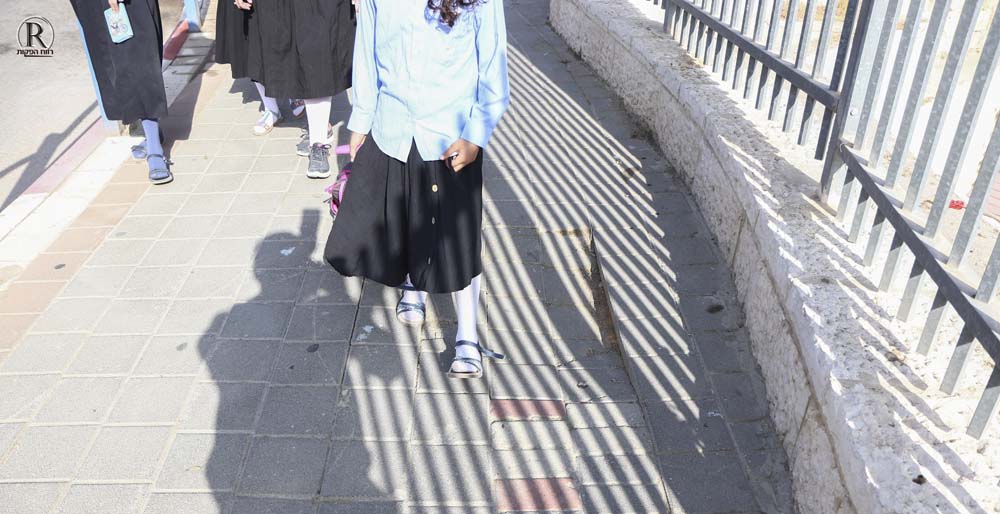 אחת התלמידות בדרכה לבית הספר משתדלת לא לדרוך במקום הלא נכון