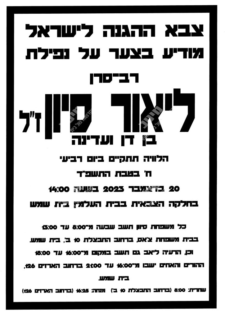 ליאור אחי היקר והאהוב, נלקחת מאיתנו מהר והכאב הוא בלתי נתפס, תמיד חשבת איך לעזור לי, היית אוהב לעזור לכולם. כשהיינו בשבתות יחד, היית עושה קסמים לאחיינים, וכל פעם מחדש היינו מתפעלים מהם.