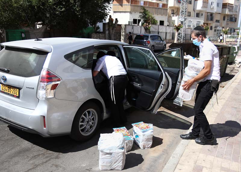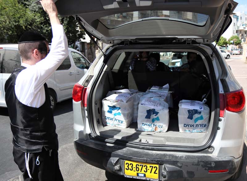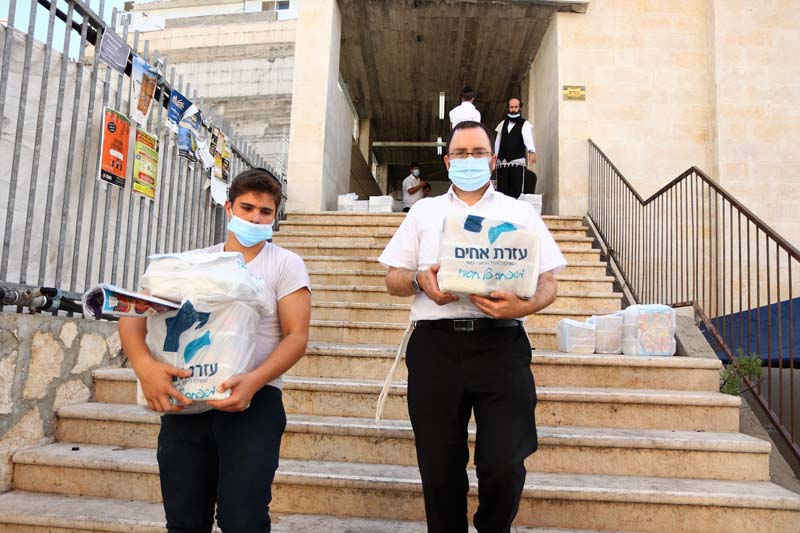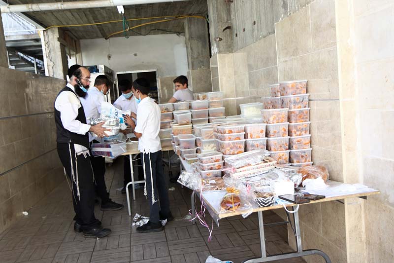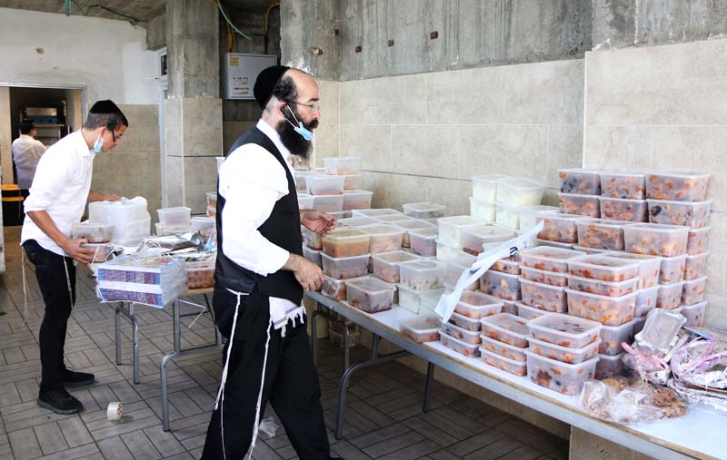 ארגון עזרת אחים בבית שמש בראשותו של הרב אברהם קאפ מחלק סעודות למאות משפחות בבית שמש, המנות נארזות על ידי מתנדבים, ומשם משנעים אותם למשפחות דרך מתנדבים נוספים שנרתמים למצוה.