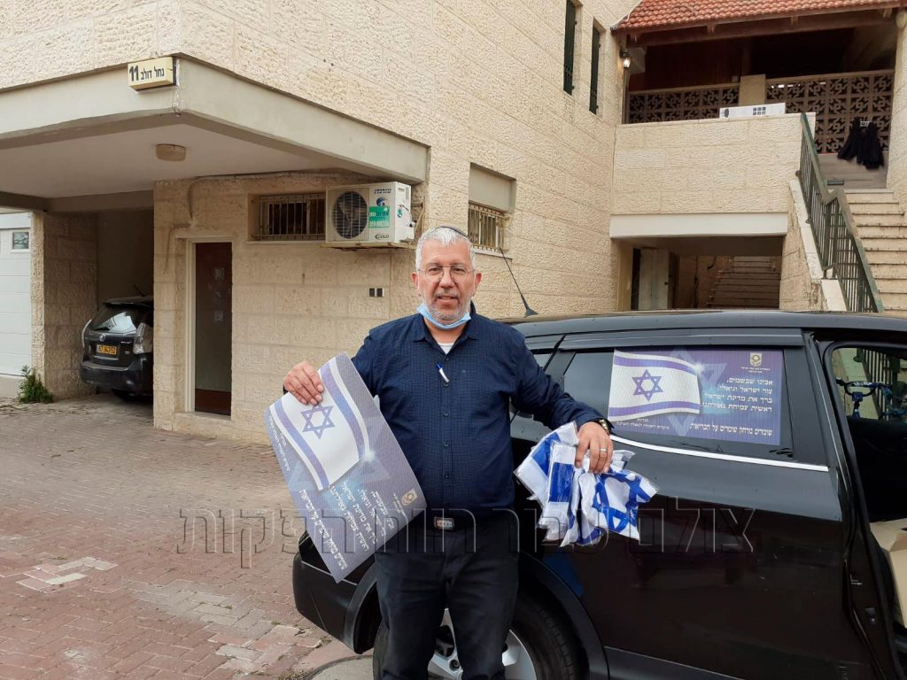 המחלקה למורשת ישראל וחבר מועצת העיר מר ניסים בריח ועיריית בית שמש מחלקים דגלים לבית ולרכב.