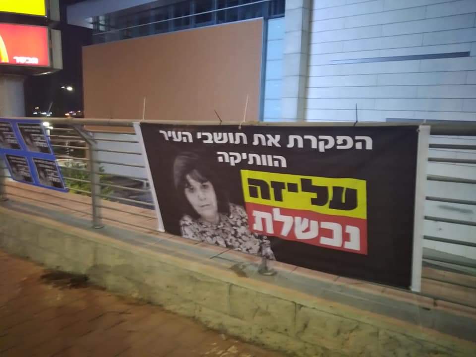 אלמונים תלו הלילה שלטים ובהם נאמר: הפקרת את תושבי העיר הותיקה, עליזה נכשלת”.