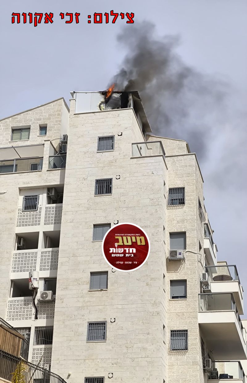 שריפה גדולה פרצה היום בבניין מגורים בן שבע קומות ברמת בית שמש ד', בקומה העליונה. המוקד, כפי שהתברר, היה בתוספת בנייה בלתי חוקית לדירה קיימת.