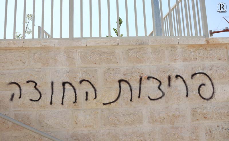 עשרות כתובות צניעות וציורים של דגלי פלסטין רוססו היום ברחוב הנביא עובדיה ובגן המשחקים החדש בשכונת רמה ג'2.