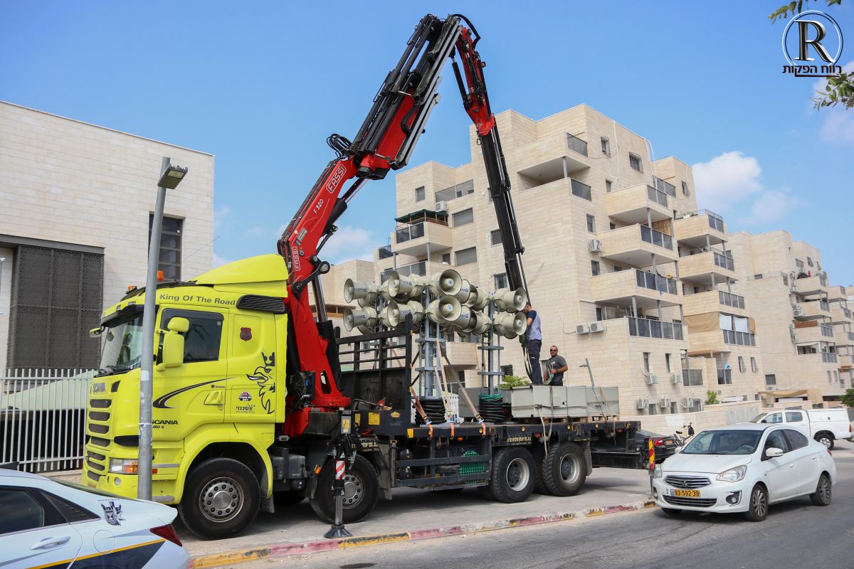בשעה 9:30 בבקר הגיע רס”ן אלעד מרום עם משאית ועליה 4 מערכות צופרים, שתים מהם מיועדות לעיר בית שמש.